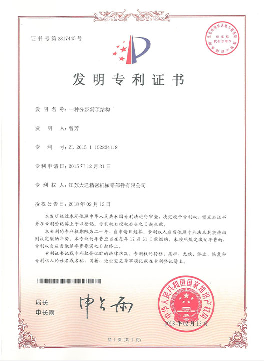 大通精密機械零部件有限公司自1999年成立以來,一直致力于高品質機械零部件和模具配件的生產和銷售,素以質量嚴苛而飲譽業界。大通公司現為江蘇省重點模具企業,中國模協標準件委員會常委單位,江蘇省模具工業協會常務理事單位。公司在江蘇蘇州和鹽城大豐建有生產基地,占地面積三十五畝,廠房面積一萬二千平方米。現有加工設備一百余臺,引進瑞士五軸設備和MAZAK車銑復合及四軸臥式加工中心等高精裝備。